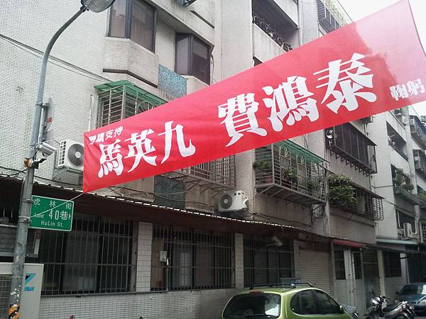 費鴻泰競選總部插旗的重大違規事件,在綠黨立委候選人潘翰聲提出檢舉之後,市政府2日下午會勘後,已經拆除。但潘翰聲發現,費鴻泰與馬英九聯名的違規布條,仍在選區到處懸掛,並且已經拍照存證。